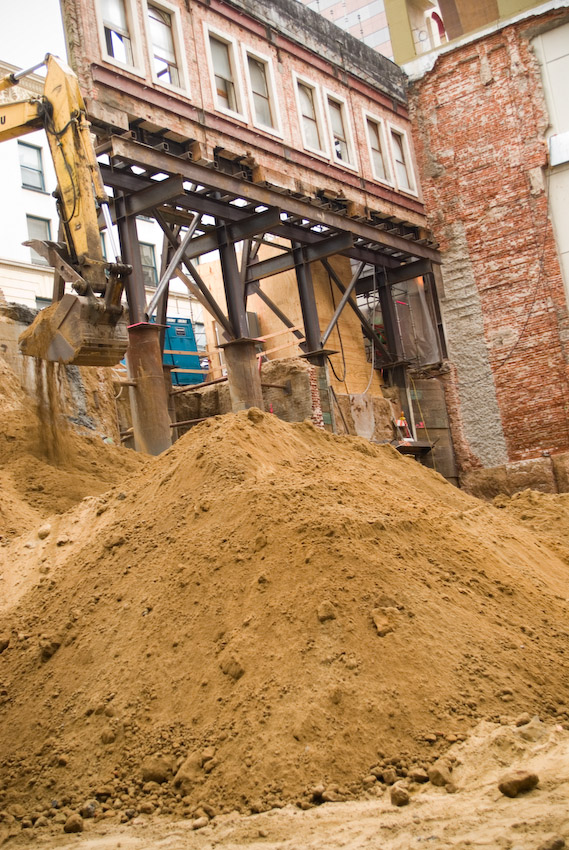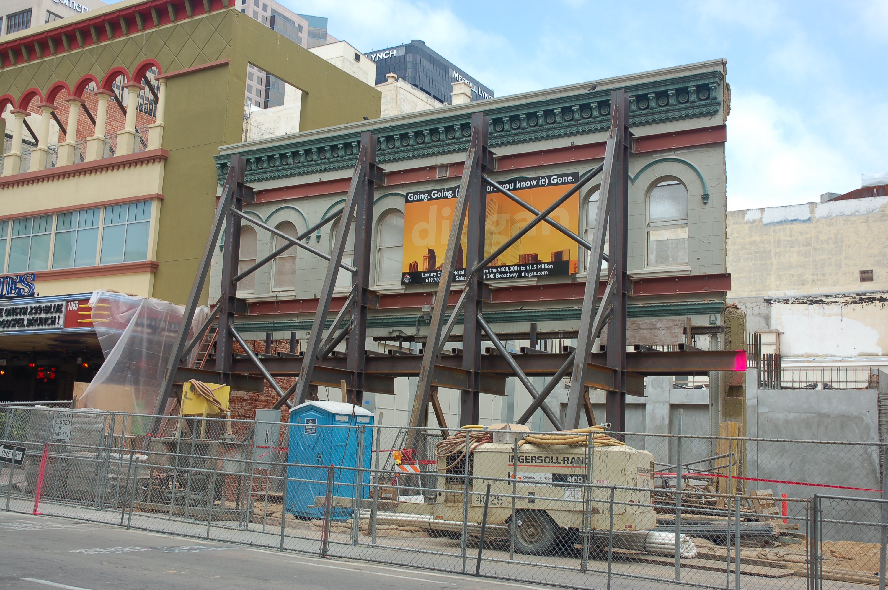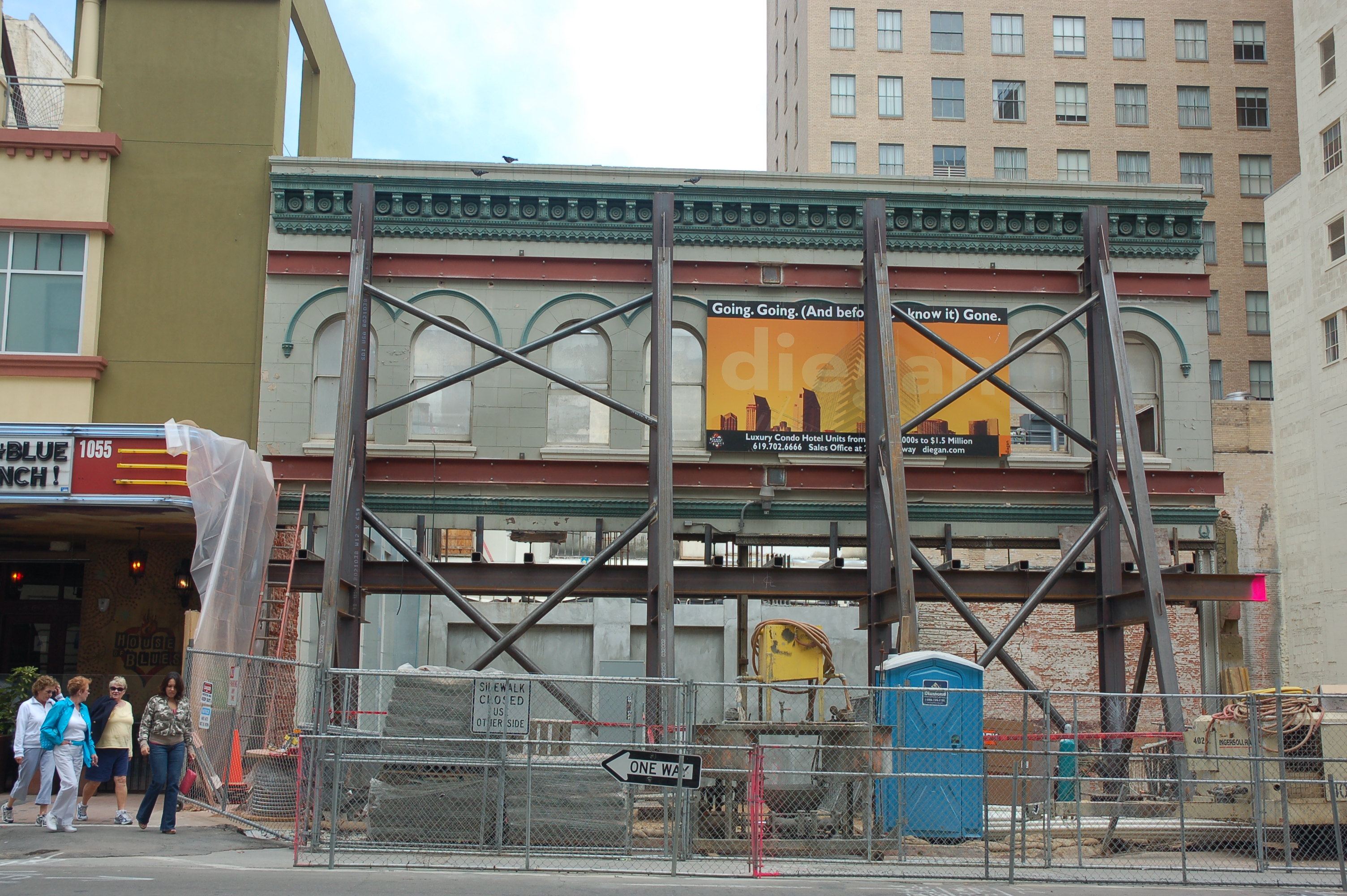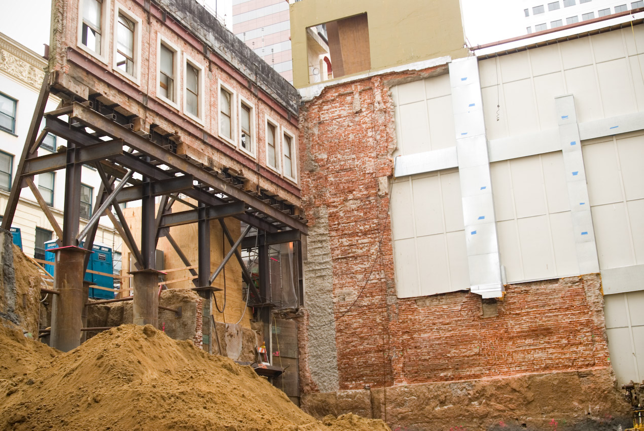 Since it opened in 1962, Malcolm Drilling Company has become one of the largest and most successful foundation contractors in the world. Headquartered in San Francisco, MDC has developed specialized and proprietary techniques that have enabled them to handle difficult earth support systems that require innovative design/build techniques. Jack White, superintendent of MDC’s San Diego office, has worked with Will Fischetti, founder of Earth Support Systems, for over ten years on numerous projects, including the Marriott Residence Inn project in San Diego in 2007. White contacted Fischetti to design the shoring and façade support plans. The Marriott Residence Inn was being built adjacent to the historic Diegan Hotel, a hundred-year-old landmark building. Because of the age of the Diegan Hotel, the building had a sub-standard foundation which needed to be supported with underpinning while the hole was being dug for the Marriott.